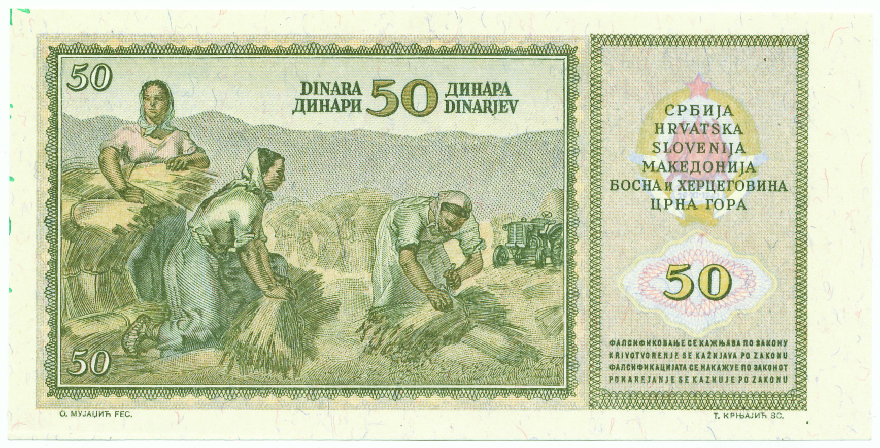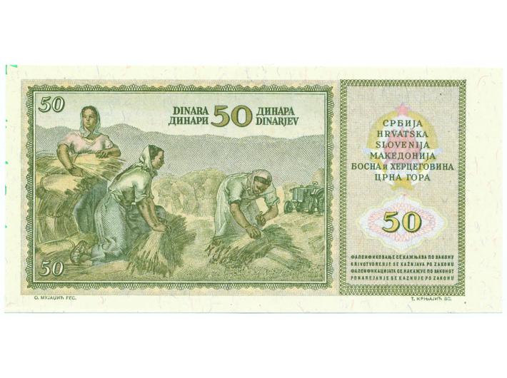 Jugoslavija, 50 dinara 1.maj 1950. - probni otisak naličja, UNC