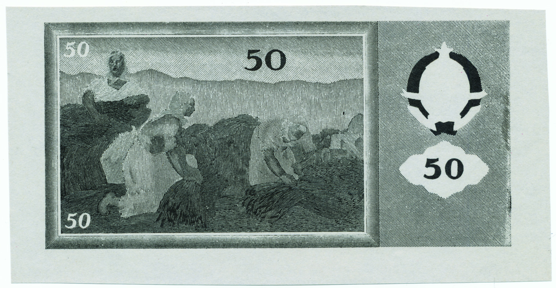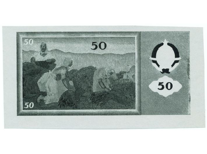 Opis: Jugoslavija, 50 dinara 1.maj 1950. - probni otisak naličja, UNC