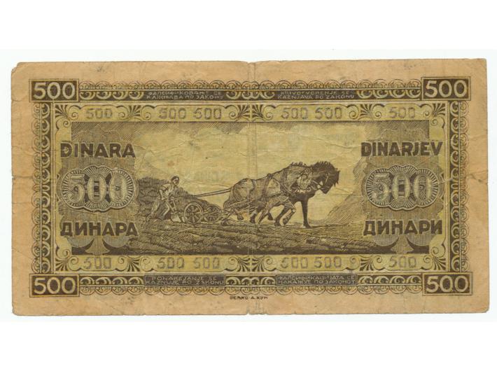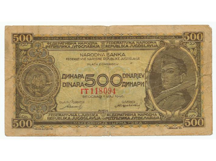 Opis: JUGOSLAVIJA, 500 dinara 1946., onovremeni falsifikat, F-VF, rijetko