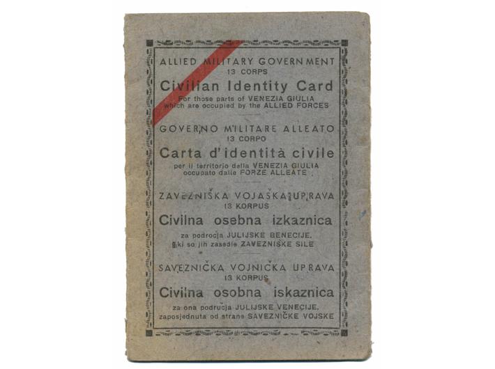 • JUGOSLAVIJA-ITALIJA, ZONA "A", civilna osobna iskaznica za 1946. godinu, 83x115 mm, rijetko