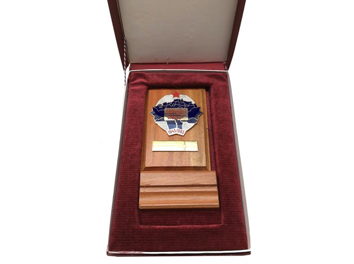 Opis: Jugoslavija, Plaketa AVNOJ-a 1983, za preživjele učesnike II. zasjedanja AVNOJA. Izuzetna rijetkost (samo 32 delegata dobila su ovu plaketu). Dodijeljena narodnom heroju D.Š. ( na aukciji RAUH 89/2011 godine pro-dana za 1440 eura s provizijom).