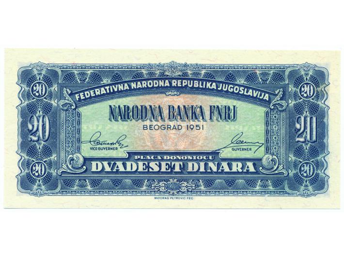 JUGOSLAVIJA, socijalistička 20 dinara 1951, UNC