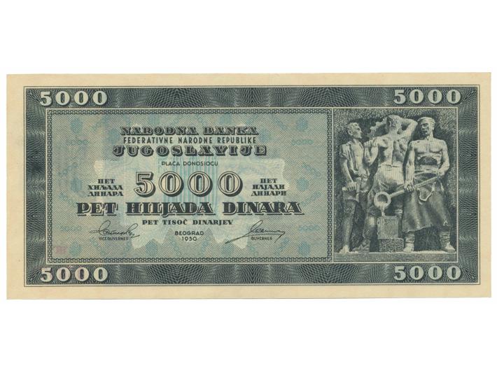 • JUGOSLAVIJA, socijalistička, "informbiro" 5000 dinara 1950, SA SERIJSKIM BROJEM, izuzetna rijetkost, UNC