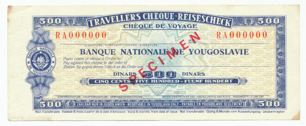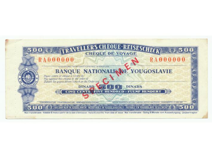 JUGOSLAVIJA, travelers cheque, 1950e godine SPECIMEN, izuzetno rijetko