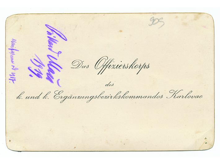 Opis: KARLOVAC, Das Offizierskorps des k. u. k. Ergänzungsbezirkskommandos, akvarel slika. 11x16,5 cm.