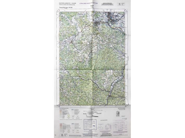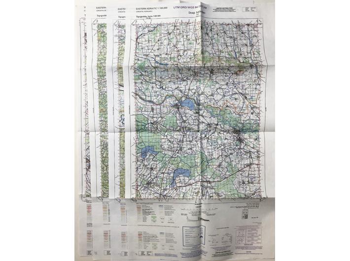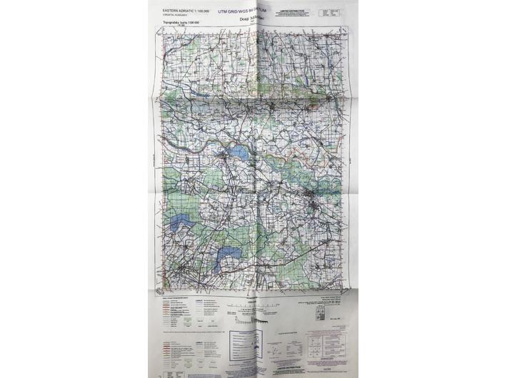 Lot, 4 vojne topografske karte, II. izdanje. Tiskane između 1982. - 1985. Opis: Lot, 4 vojne topografske karte, II. izdanje. Tiskane između 1982. - 1985. sa sadržajem prema stanju 1980.-1984. Operativne karte UNPROFOR-a. Sisak, Nova Gradiška, Vinkovci i Donji Miholjac. Karte dimenzija 47,5x82 cm. Stanje odlično. Lot, 4 vojne topografske karte, II. izdanje. Tiskane između 1982. - 1985. Aukcija: Aukcija br. 64 - Numizmatika, militarija Kataloški broj: 549 Kategorija: Dokumenti i ostalo Trenutna ponuđena cijena je 18EUR, ukoliko želite dati svoju ponudu ona mora biti barem 18EUR ili veća. Upišite vrijednost vaše ponude: Ostali predmeti iz kategorije: Dokumenti i ostalo 531 60 EUR 532 100 EUR 533 12 EUR 534 10 EUR 535 15 EUR 536 15 EUR 537 7 EUR 538 30 EUR 539 15 EUR 540 15 EUR 541 20 EUR 542 5 EUR 543 60 EUR 544 100 EUR 545 60 EUR 546 35 EUR 547 8 EUR 548 10 EUR 549 18 EUR 550 60 EUR 123→