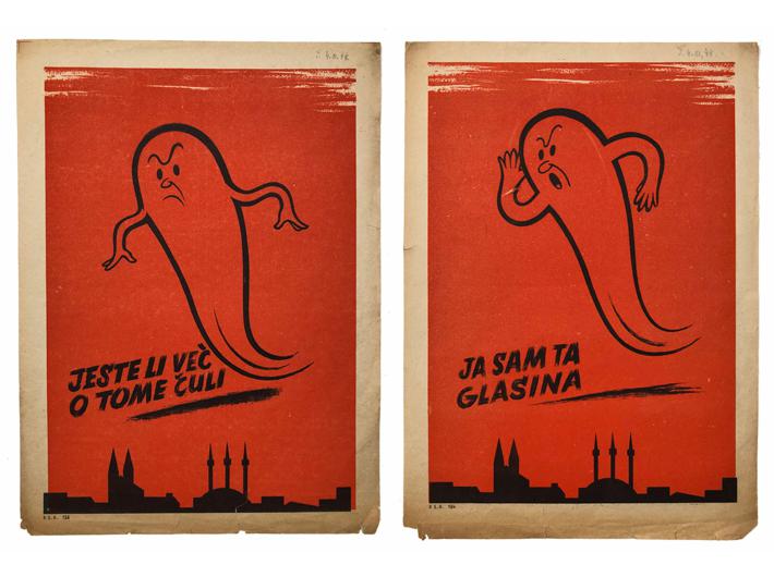 Opis: Lot: "JESTE LI VEĆ O TOME ČULI" i "JA SAM TA GLASINA", propagandni plakati NDH. Izdao: Staffel Kroatien (PSK), 1944. + knjiga: Stjepan Bekavac/Matio Jareb: Politički plakat u NDH. Zagreb, 1945. Signature plakata: P.S.K. 153. i P.S.K. 154. 24x33 cm. Stanje vrlo dobro.