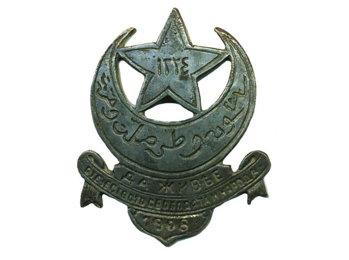 • MAKEDONIJA - BUGARSKA, oznaka makedonskih revolucionara 1908, izuzetna rijetkost, među najrjeđim makedonskim i bugarskim oznakama, TB 35x45 mm