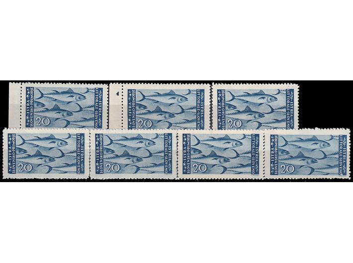 Opis: Marka 20 lira s pogreškama tiska opisanima u Novaković pod brojevima B30-51,1 / 61,1 / 63,1 / 65,1 / 73,1 / 76,1 / 72,2. Odlična kvaliteta.