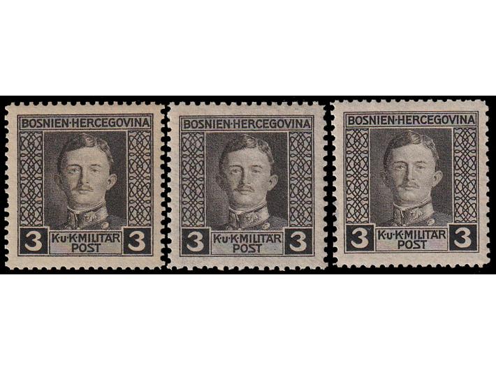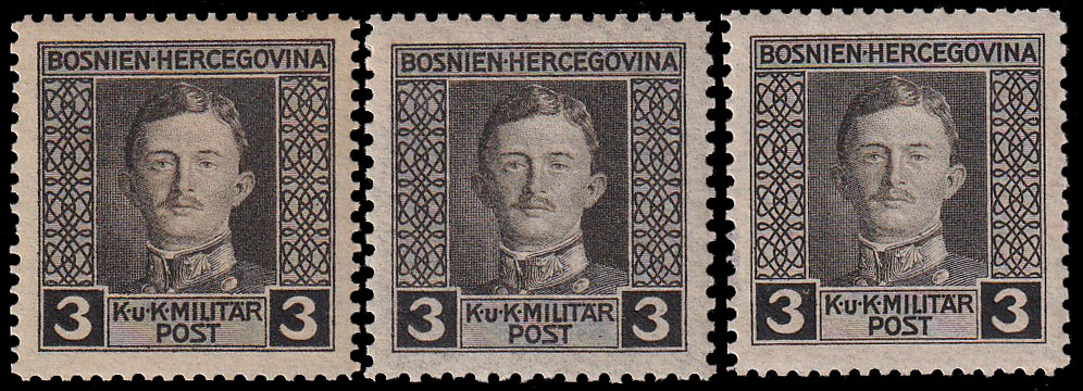 • Michel br. 124 A zupčanje 12 ½; B zupčanje 11 ½ (falc) i C zupčanje 12 ½:11 ½