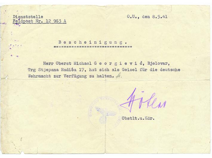 MIHAEL GEORGIJEVIĆ, lot 3 fotografije i dokument iz 1941. godine. Opis: MIHAEL GEORGIJEVIĆ, lot 3 fotografije i dokument iz 1941. godine. Mihael Georgijević igrao je važnu ulogu pri ujedinjenju Međimurja sa Državom SHS. Kasnije je bio pukovnik u Kraljevini Jugoslaviji i NDH. MIHAEL GEORGIJEVIĆ, lot 3 fotografije i dokument iz 1941. godine. Aukcija: Aukcija br. 67 - Numizmatika, militarija Kataloški broj: 489 Kategorija: Fotografije i promičba Trenutna ponuđena cijena je 45EUR, ukoliko želite dati svoju ponudu ona mora biti barem 45EUR ili veća. Upišite vrijednost vaše ponude: Ostali predmeti iz kategorije: Fotografije i promičba 474 30 EUR 475 40 EUR 476 30 EUR 477 8 EUR 478 16 EUR 479 14 EUR 480 55 EUR 481 16 EUR 482 15 EUR 483 30 EUR 484 4 EUR 485 200 EUR 486 80 EUR 487 180 EUR 488 25 EUR 489 45 EUR 490 45 EUR 491 65 EUR 492 170 EUR 493 220 EUR 123→