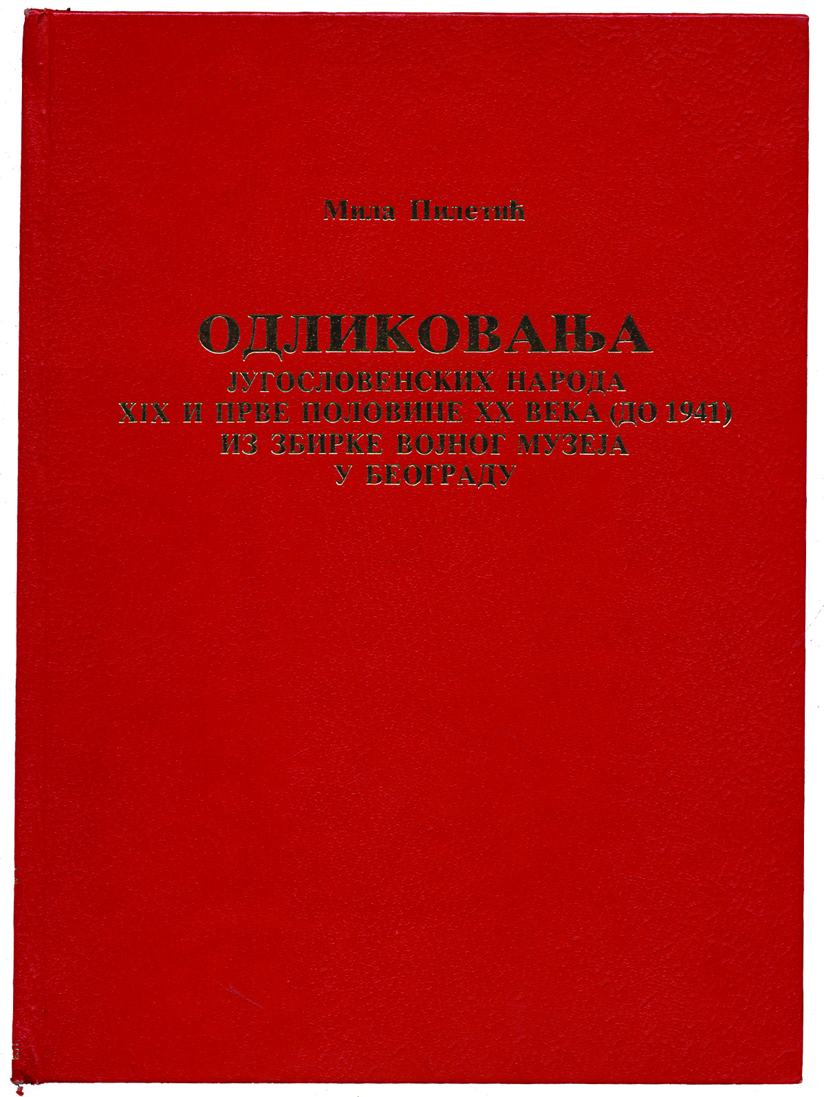 Opis: Mila Piletić: Odlikovanja jugoslovenskih naroda XIX i prve polovine XX veka (do 1941) iz zbirke Vojnog muzeja u Beogradu. Beograd, 1987. Tvrdi uvez sa zlatotiskom, cijelostranične ilustracije u boji i crnobijele, 206 str., stanje odlično. 19,5x26 cm