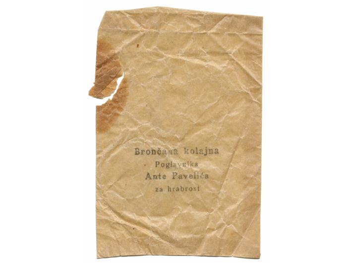 NDH 1941-1945, brončana medalja Ante Pavelića za hrabrost (II. red) VREĆICA za dodjelu na terenu, oštećena, izuzetno rijetko Opis: NDH 1941-1945, brončana medalja Ante Pavelića za hrabrost (II. red) VREĆICA za dodjelu na terenu, oštećena, izuzetno rijetko NDH 1941-1945, brončana medalja Ante Pavelića za hrabrost (II. red) VREĆICA za dodjelu na terenu, oštećena, izuzetno rijetko Aukcija: Aukcija br. 70 - Numizmatika, militarija Kataloški broj: 2244 Kategorija: Militarija Trenutna ponuđena cijena je 220EUR, ukoliko želite dati svoju ponudu ona mora biti barem 240EUR ili veća. Upišite vrijednost vaše ponude: Ostali predmeti iz kategorije: Militarija 2212 35 EUR 2213 45 EUR 2214 120 EUR 2215 40 EUR 2216 150 EUR 2217 30 EUR 2218 20 EUR 2219 150 EUR 2220 230 EUR 2221 75 EUR 2222 360 EUR 2223 130 EUR 2224 150 EUR 2225 160 EUR 2226 95 EUR 2227 1600 EUR 2228 4000 EUR 2229 1400 EUR 2230 1500 EUR 2231 900 EUR 1234→
