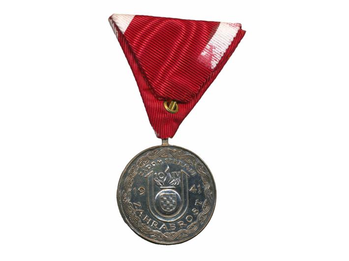 • NDH 1941-1945, srebrna medalja Ante Pavelića za hrabrost (I. red), Ag puncirano TK i punca za srebro