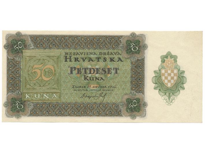 Opis: NDH, 50 kuna 15. siječnja 1944, UNC+ (savršeno centrirana, idealan primjerak)