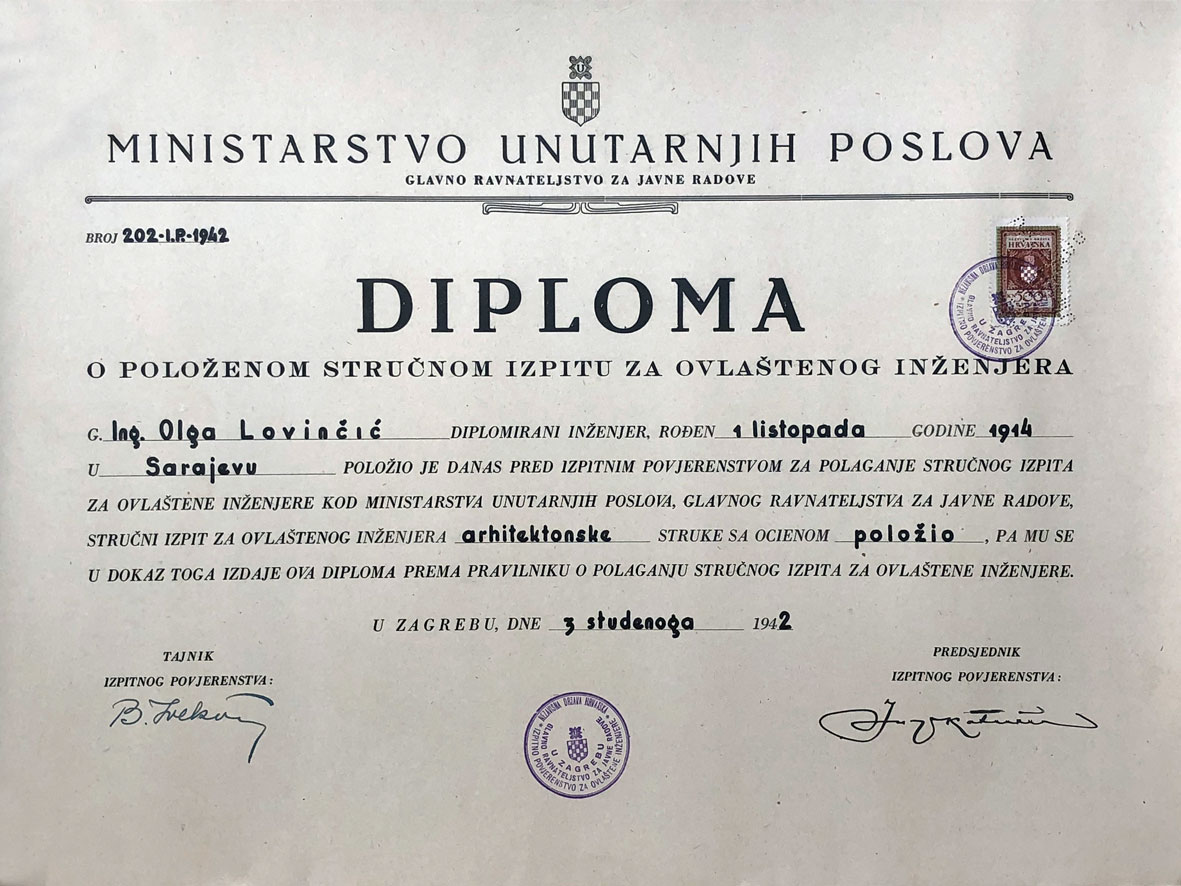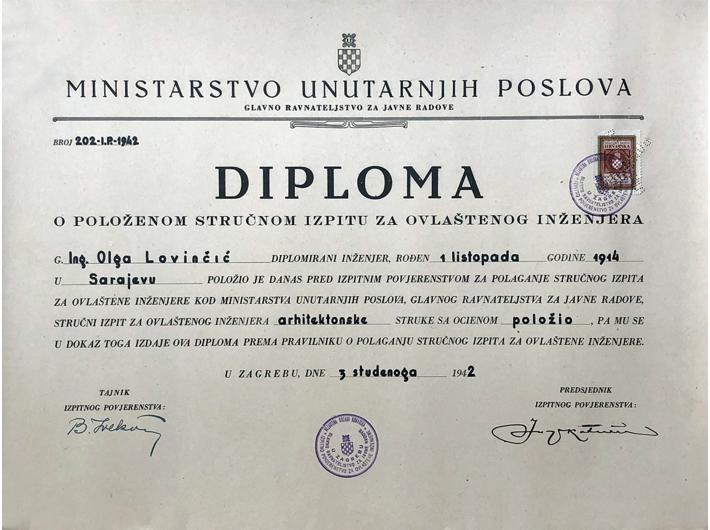 NDH, DIPLOMA o položenom stručnom ispitu za ovlaštenog inženjera arhitektonske struke, izdana u Zagrebu, 3. studenog 1942. Opis: NDH, DIPLOMA o položenom stručnom ispitu za ovlaštenog inženjera arhitektonske struke, izdana u Zagrebu, 3. studenog 1942. Izdalo Glavno ravnateljstvo za javne radove, ovjereno pečatom. Deblji karton, 47x33 cm. Stanje odlično. Vrlo rijetko! NDH, DIPLOMA o položenom stručnom ispitu za ovlaštenog inženjera arhitektonske struke, izdana u Zagrebu, 3. studenog 1942. Aukcija: Aukcija br. 64 - Numizmatika, militarija Kataloški broj: 546 Kategorija: Dokumenti i ostalo Trenutna ponuđena cijena je 35EUR, ukoliko želite dati svoju ponudu ona mora biti barem 40EUR ili veća. Upišite vrijednost vaše ponude: Ostali predmeti iz kategorije: Dokumenti i ostalo 531 60 EUR 532 100 EUR 533 12 EUR 534 10 EUR 535 15 EUR 536 15 EUR 537 7 EUR 538 30 EUR 539 15 EUR 540 15 EUR 541 20 EUR 542 5 EUR 543 60 EUR 544 100 EUR 545 60 EUR 546 35 EUR 547 8 EUR 548 10 EUR 549 18 EUR 550 60 EUR 123→