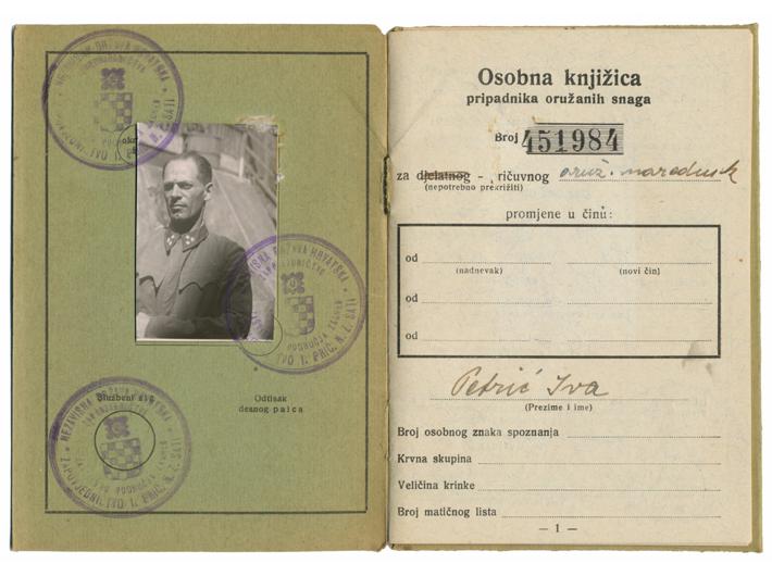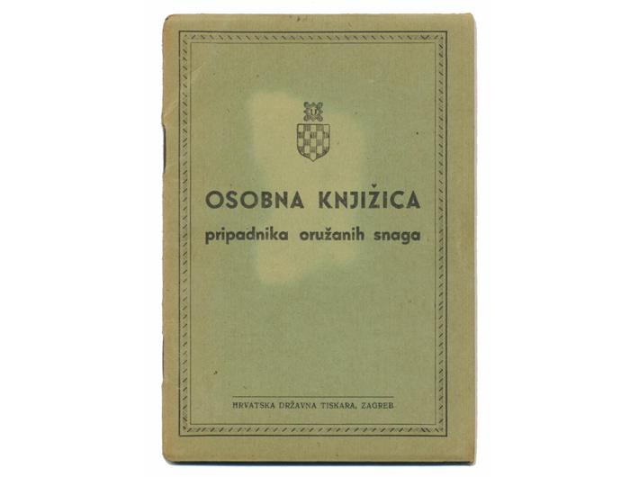 • NDH, osobna knjižica pripadnika oružanih snaga, 1944, u izvrsnom stanju s koricama i dozvolom da može biti u civilnoj odjeći radi nedostatka uniformi. Rijetko i zanmiljivo.