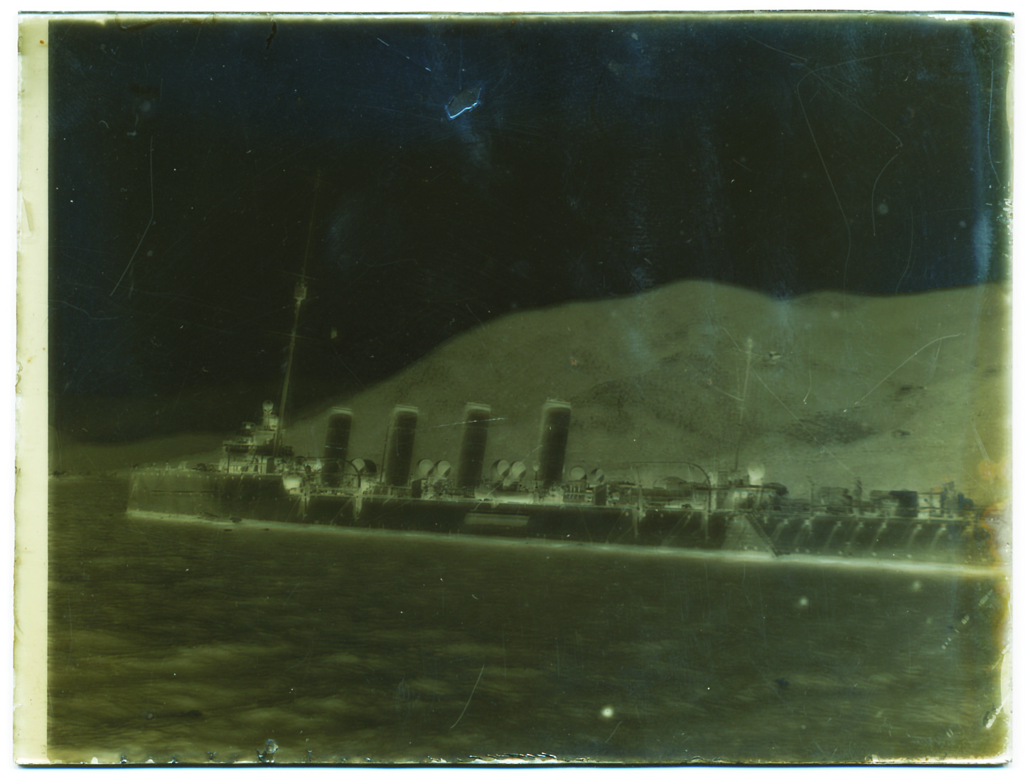 • NOVARA-class bojni brod (vjerojatno Admiral Spaun) fotografija-staklo, nasukan?, 118x88 mm