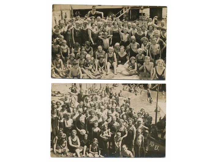 Opis: OPATIJA / ABBAZIA, lot 4 fotografije, ljeto 1925. Ljudi i djeca na kupalištu. 14x9 cm