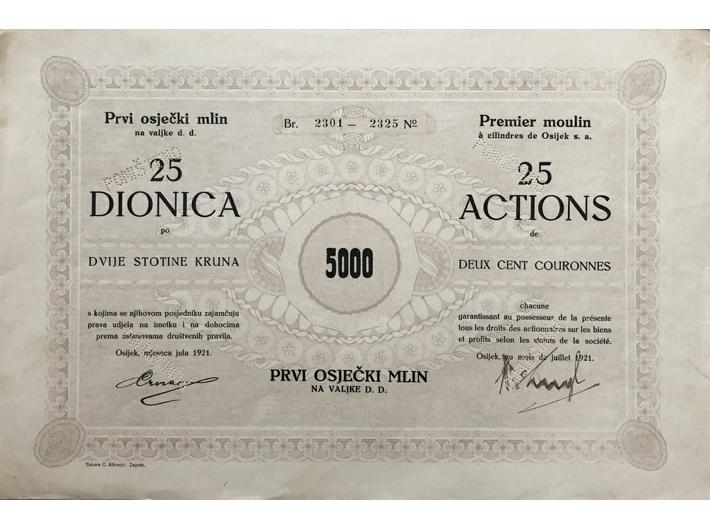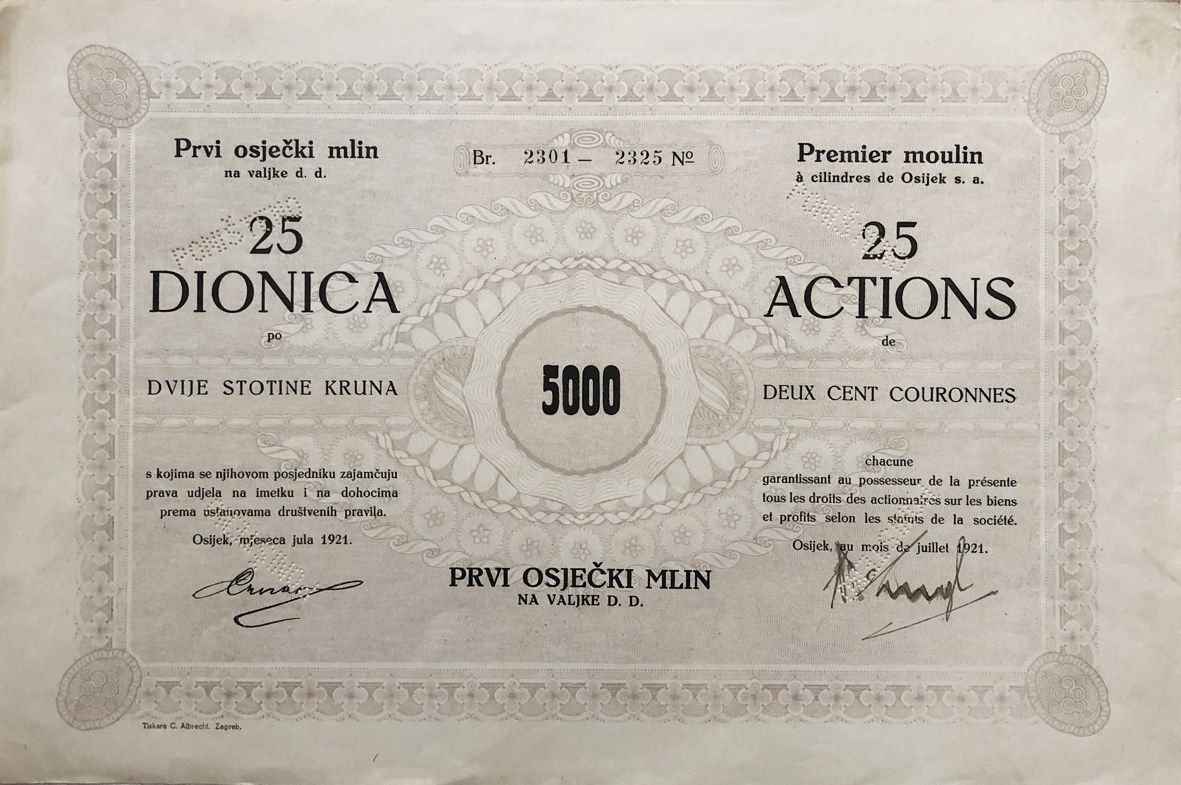 OSIJEK, dionica "Prvi osječki mlin na valjke" d.d., 200 kruna, 7.1921., 38x25 cm Opis: OSIJEK, dionica "Prvi osječki mlin na valjke" d.d., 200 kruna, 7.1921., 38x25 cm OSIJEK, dionica "Prvi osječki mlin na valjke" d.d., 200 kruna, 7.1921., 38x25 cm Aukcija: Aukcija br. 64 - Numizmatika, militarija Kataloški broj: 350 Kategorija: Dionice - Hrvatska Trenutna ponuđena cijena je 10EUR, ukoliko želite dati svoju ponudu ona mora biti barem 12EUR ili veća. Upišite vrijednost vaše ponude: Ostali predmeti iz kategorije: Dionice - Hrvatska 335 80 EUR 336 40 EUR 337 35 EUR 338 15 EUR 339 30 EUR 340 20 EUR 341 30 EUR 342 100 EUR 343 60 EUR 344 10 EUR 345 8 EUR 346 18 EUR 347 20 EUR 348 12 EUR 349 30 EUR 350 10 EUR 351 15 EUR 352 22 EUR 353 15 EUR 354 8 EUR 12→