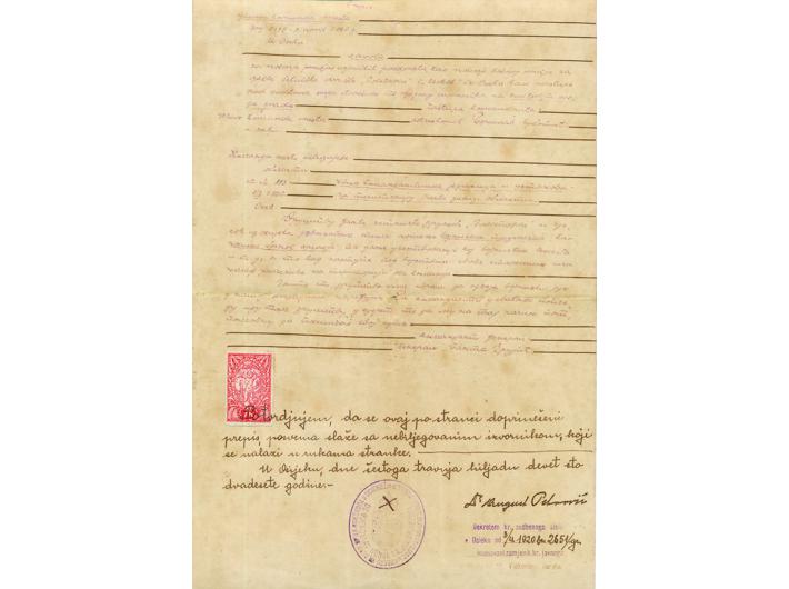 OSIJEK, oznaka SCOUT-DRUŽBA "POLETARAC" i prijepis dozvole za nošenje te oznake iz 1920. Opis: OSIJEK, oznaka SCOUT-DRUŽBA "POLETARAC" i prijepis dozvole za nošenje te oznake iz 1920. Dokument pisan na latinici i ćirilici, biljegovan i potvrđen žigom kr. jav. bilježnika dr. Vjekoslava Mengla. OSIJEK, oznaka SCOUT-DRUŽBA "POLETARAC" i prijepis dozvole za nošenje te oznake iz 1920. Aukcija: Aukcija br. 67 - Numizmatika, militarija Kataloški broj: 535 Kategorija: Dokumenti i ostalo Trenutna ponuđena cijena je 20EUR, ukoliko želite dati svoju ponudu ona mora biti barem 20EUR ili veća. Upišite vrijednost vaše ponude: Ostali predmeti iz kategorije: Dokumenti i ostalo 524 40 EUR 525 75 EUR 526 45 EUR 527 100 EUR 528 10 EUR 529 10 EUR 530 150 EUR 531 35 EUR 532 120 EUR 533 20 EUR 534 12 EUR 535 20 EUR 536 8 EUR 537 17 EUR 538 40 EUR 539 6 EUR 540 30 EUR 541 30 EUR 542 60 EUR 543 25 EUR 1234→