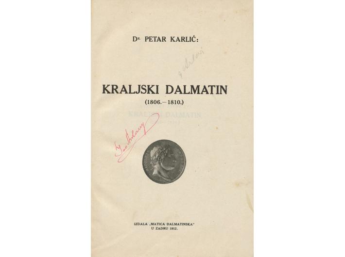 Petar Karlić: Kraljevski Dalmatin (1806. – 1810.). Zadar: Matica dalmatinska, 1912.