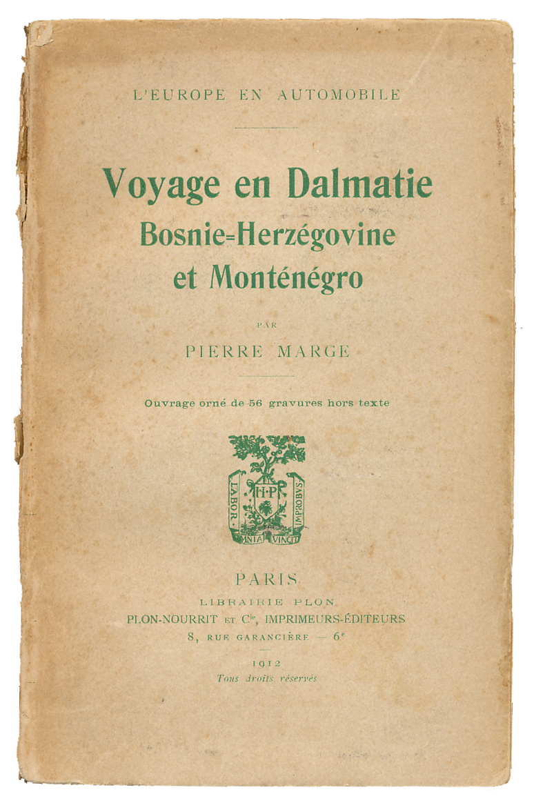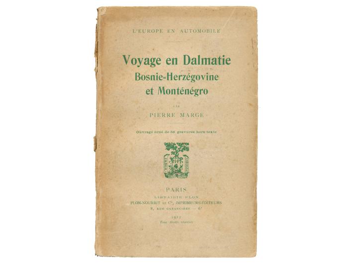 Opis: Pierre Marge: Voyage en Dalmatie, Bosnie-Herzegovine et Montenegro, Paris: Librarie Plon, 1912. Autor putuje svojim automobilom, što je u to doba još uvijek rijetko. Sigurno je imao dosta problema po balkanskim cestama. Kartonski uvez, 373 stranice, 56 fotografija. Stanje vrlodobro. 12x19 cm