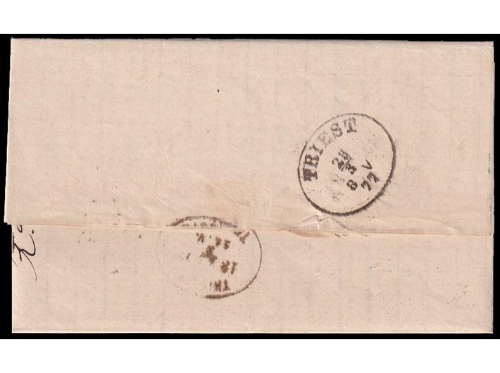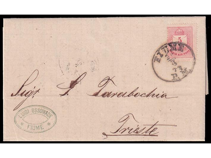Opis: Pismo s kompletnim sadržajem upućeno iz Rijeke u Trst 02.03. 1877. Dobra kvaliteta.