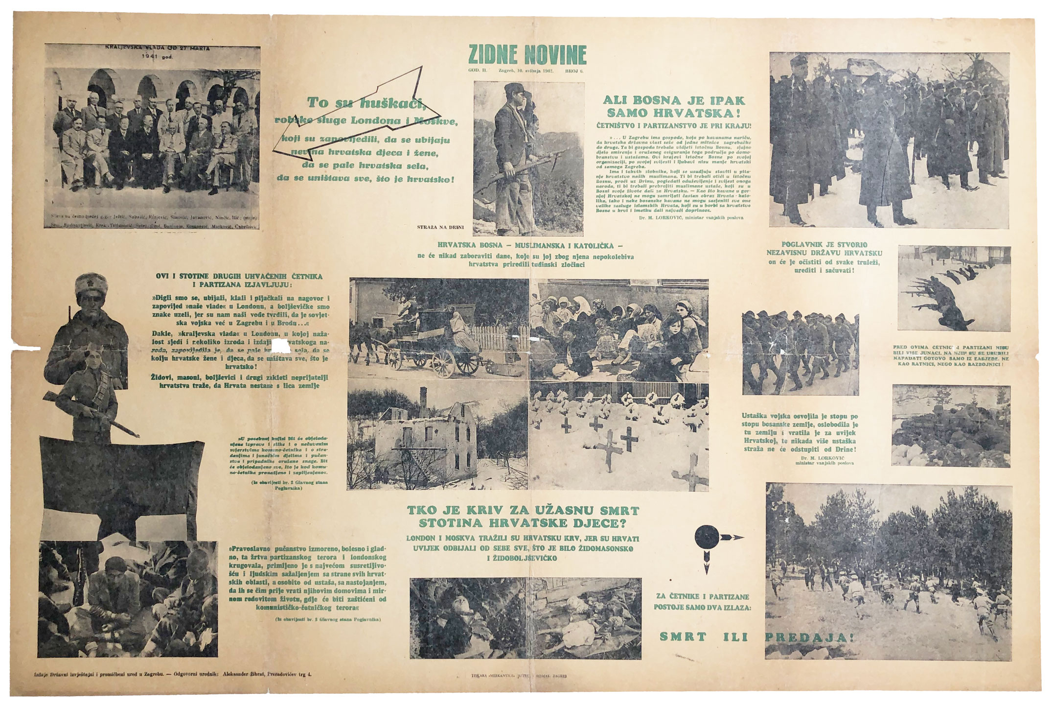 Opis: Plakat, Hrvatska, NDH, Zidne novine, godina II broj 6, 10. svibnja 1942. Repariran, 63x95 cm.