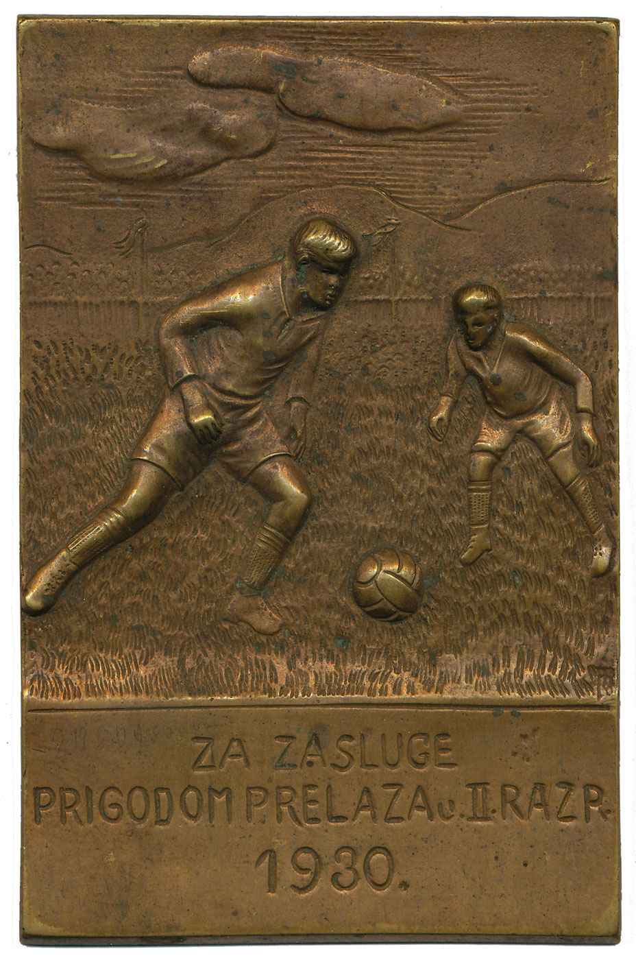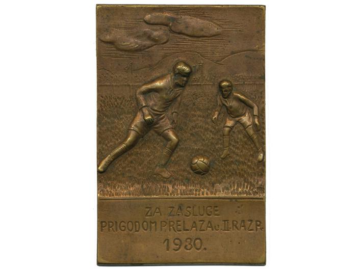 Plaketa, nogomet (vjerojatno Osijek) za zasluge 1930, AE, 95x140 mm, rijetko Opis: Plaketa, nogomet (vjerojatno Osijek) za zasluge 1930, AE, 95x140 mm, rijetko Plaketa, nogomet (vjerojatno Osijek) za zasluge 1930, AE, 95x140 mm, rijetko Aukcija: Aukcija br. 67 - Numizmatika, militarija Kataloški broj: 290 Kategorija: Nogomet Trenutna ponuđena cijena je 15EUR, ukoliko želite dati svoju ponudu ona mora biti barem 15EUR ili veća. Upišite vrijednost vaše ponude: Ostali predmeti iz kategorije: Nogomet 290 15 EUR 291 75 EUR 292 60 EUR 293 35 EUR 294 30 EUR 295 17 EUR 296 20 EUR 297 10 EUR 298 10 EUR 579 130 EUR