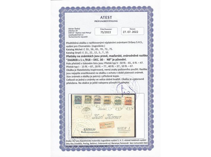 Preporučeno i žurno upućeno pismo iz Zagreba u Beč 30.12. 1918. Opis: Preporučeno i žurno upućeno pismo iz Zagreba u Beč 30.12. 1918. Frankatura filatelistički inspirirana, ali frankirano i s markom 15 fill. bijela brojka. Vodoravni trag savijanja ali ne preko maraka. Fotoatest Šedivý. Preporučeno i žurno upućeno pismo iz Zagreba u Beč 30.12. 1918. Aukcija: Aukcija br. 63 - Filatelija i razglednice Kataloški broj: 103 Kategorija: SHS Hrvatska Kvaliteta: ✉ Trenutna ponuđena cijena je 50EUR, ukoliko želite dati svoju ponudu ona mora biti barem 55EUR ili veća. Upišite vrijednost vaše ponude: Ostali predmeti iz kategorije: SHS Hrvatska **/* 98 2300 EUR **/* 99 650 EUR ** 100 70 EUR ☉ 101 35 EUR ✉ 102 55 EUR ✉ 103 50 EUR ✉ 104 25 EUR ✉ 105 60 EUR **/* 106 30 EUR ** 107 30 EUR ✉ 108 25 EUR ✉ 109 25 EUR ✉ 110 25 EUR ✉ 111 25 EUR ✉ 112 25 EUR ✉ 113 30 EUR ✉ 114 20 EUR ✉ 115 16 EUR ✉ 116 25 EUR ✉ 117 30 EUR 123→