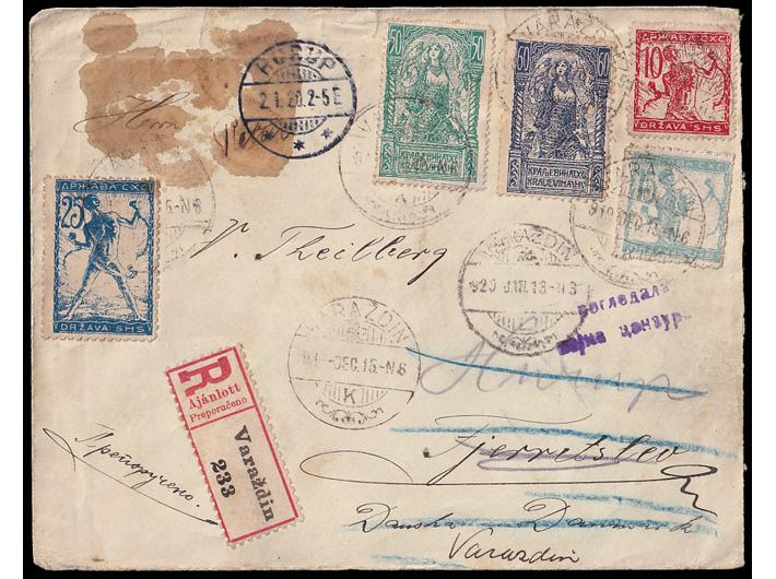 Preporučeno pismo upućeno iz Varaždina u Dansku 15.12. 1920. Opis: Preporučeno pismo upućeno iz Varaždina u Dansku 15.12. 1920. Cenzurirano po vojnoj cenzuri SHS. Primatelj nepoznat i pismo vraćeno pošiljaocu. Atraktivna peterobojna frankatura i neuobičajena destinacija. Preporučeno pismo upućeno iz Varaždina u Dansku 15.12. 1920. Aukcija: Aukcija br. 63 - Filatelija i razglednice Kataloški broj: 125 Kategorija: SHS Hrvatska Kvaliteta: ✉ Trenutna ponuđena cijena je 20EUR, ukoliko želite dati svoju ponudu ona mora biti barem 20EUR ili veća. Upišite vrijednost vaše ponude: Ostali predmeti iz kategorije: SHS Hrvatska **/* 98 2300 EUR **/* 99 650 EUR ** 100 70 EUR ☉ 101 35 EUR ✉ 102 55 EUR ✉ 103 50 EUR ✉ 104 25 EUR ✉ 105 60 EUR **/* 106 30 EUR ** 107 30 EUR ✉ 108 25 EUR ✉ 109 25 EUR ✉ 110 25 EUR ✉ 111 25 EUR ✉ 112 25 EUR ✉ 113 30 EUR ✉ 114 20 EUR ✉ 115 16 EUR ✉ 116 25 EUR ✉ 117 30 EUR 123→