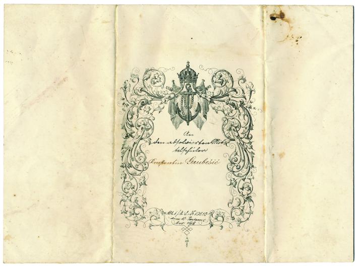 Promaknuće za seeaspiranta (seekadett) austrijske ratne mornarice, 1915. Opis: Promaknuće za seeaspiranta (seekadett) austrijske ratne mornarice, 1915. Dodjeljeno Konstantinu Grubešiću. 27,5x40,5 cm. Promaknuće za seeaspiranta (seekadett) austrijske ratne mornarice, 1915. Aukcija: Aukcija br. 67 - Numizmatika, militarija Kataloški broj: 527 Kategorija: Dokumenti i ostalo Trenutna ponuđena cijena je 45EUR, ukoliko želite dati svoju ponudu ona mora biti barem 50EUR ili veća. Upišite vrijednost vaše ponude: Ostali predmeti iz kategorije: Dokumenti i ostalo 524 40 EUR 525 75 EUR 526 45 EUR 527 100 EUR 528 10 EUR 529 10 EUR 530 150 EUR 531 35 EUR 532 120 EUR 533 20 EUR 534 12 EUR 535 20 EUR 536 8 EUR 537 17 EUR 538 40 EUR 539 6 EUR 540 30 EUR 541 30 EUR 542 60 EUR 543 25 EUR 1234→
