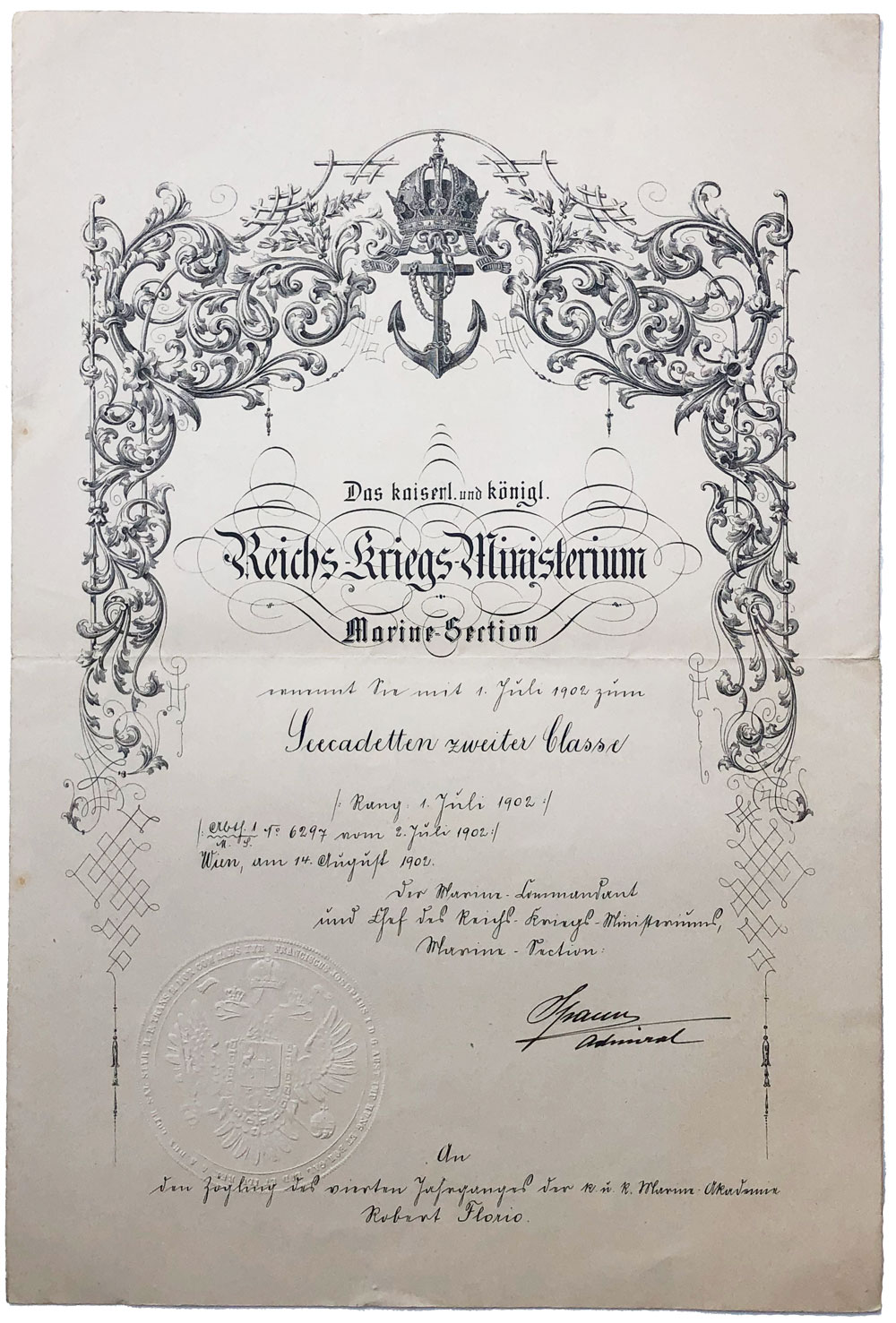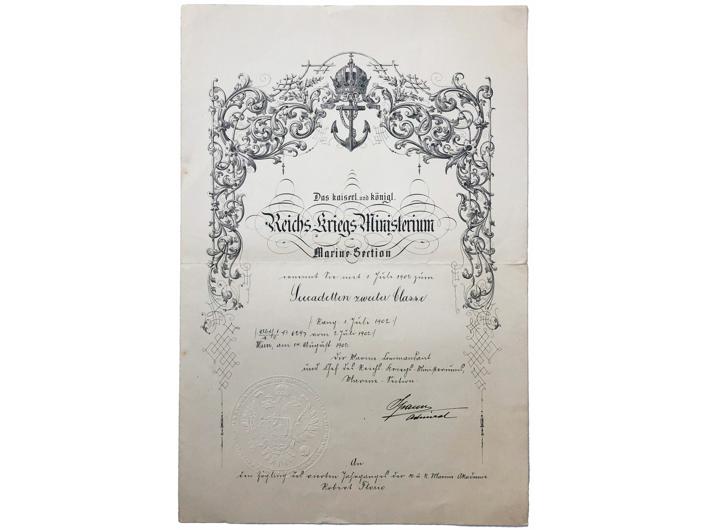 Promaknuće za seekadetta II. klase austrijske ratne mornarice, 1902. Opis: Promaknuće za seekadetta II. klase austrijske ratne mornarice, 1902. Dodjeljeno Robertu Floriju. 27,5x40,5 cm. Stanje odlično. Promaknuće za seekadetta II. klase austrijske ratne mornarice, 1902. Aukcija: Aukcija br. 67 - Numizmatika, militarija Kataloški broj: 526 Kategorija: Dokumenti i ostalo Trenutna ponuđena cijena je 45EUR, ukoliko želite dati svoju ponudu ona mora biti barem 50EUR ili veća. Upišite vrijednost vaše ponude: Ostali predmeti iz kategorije: Dokumenti i ostalo 524 40 EUR 525 75 EUR 526 45 EUR 527 100 EUR 528 10 EUR 529 10 EUR 530 150 EUR 531 35 EUR 532 120 EUR 533 20 EUR 534 12 EUR 535 20 EUR 536 8 EUR 537 17 EUR 538 40 EUR 539 6 EUR 540 30 EUR 541 30 EUR 542 60 EUR 543 25 EUR 1234→