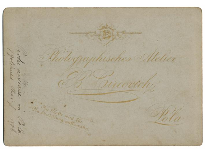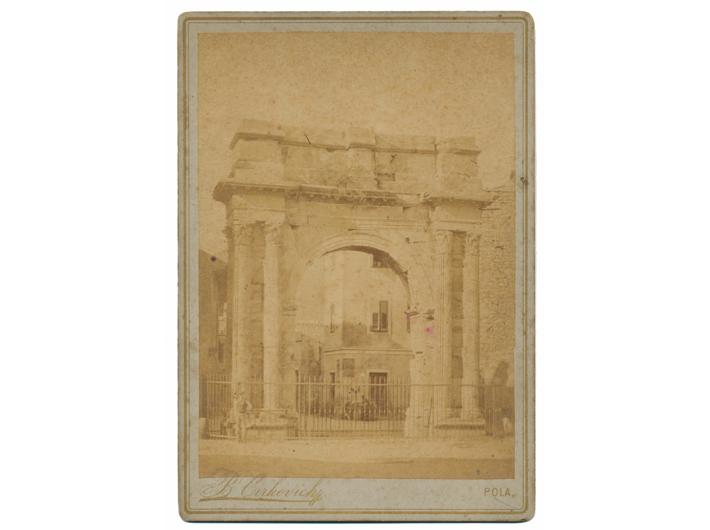 PULA/POLA, Slavoluk Sergijevaca - Zlatna vrata, 1886., foto atelje B. Circovich Opis: PULA/POLA, Slavoluk Sergijevaca - Zlatna vrata, 1886., foto atelje B. Circovich, na poleđini logotip u zlatotisku. Fotografija podlijepljena standardnim kartonom kabinet formata. 11,4x16,2 cm. PULA/POLA, Slavoluk Sergijevaca - Zlatna vrata, 1886., foto atelje B. Circovich Aukcija: Aukcija br. 70 - Numizmatika, militarija Kataloški broj: 2334 Kategorija: Dokumenti, fotografije i ostalo Trenutna ponuđena cijena je 40EUR, ukoliko želite dati svoju ponudu ona mora biti barem 45EUR ili veća. Upišite vrijednost vaše ponude: Ostali predmeti iz kategorije: Dokumenti, fotografije i ostalo 2279 55 EUR 2280 25 EUR 2281 50 EUR 2282 95 EUR 2283 60 EUR 2284 350 EUR 2285 150 EUR 2286 10 EUR 2287 10 EUR 2288 45 EUR 2289 85 EUR 2290 25 EUR 2291 340 EUR 2292 1000 EUR 2293 2400 EUR 2294 2000 EUR 2295 12 EUR 2296 8 EUR 2297 250 EUR 2298 14 EUR 1234→
