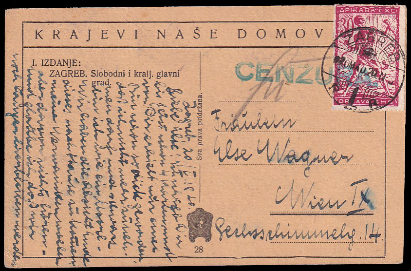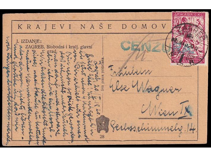 Razglednica Zagreba upućena iz Zagreba u Beč 20.05. 1920. Opis: Razglednica Zagreba upućena iz Zagreba u Beč 20.05. 1920. U odlasku cenzurirana, što je potvrđeno otiskom vodoravnog žiga CENZURA u plavoj boji. Dobra kvaliteta. Razglednica Zagreba upućena iz Zagreba u Beč 20.05. 1920. Aukcija: Aukcija br. 63 - Filatelija i razglednice Kataloški broj: 115 Kategorija: SHS Hrvatska Kvaliteta: ✉ Trenutna ponuđena cijena je 16EUR, ukoliko želite dati svoju ponudu ona mora biti barem 18EUR ili veća. Upišite vrijednost vaše ponude: Ostali predmeti iz kategorije: SHS Hrvatska **/* 98 2300 EUR **/* 99 650 EUR ** 100 70 EUR ☉ 101 35 EUR ✉ 102 55 EUR ✉ 103 50 EUR ✉ 104 25 EUR ✉ 105 60 EUR **/* 106 30 EUR ** 107 30 EUR ✉ 108 25 EUR ✉ 109 25 EUR ✉ 110 25 EUR ✉ 111 25 EUR ✉ 112 25 EUR ✉ 113 30 EUR ✉ 114 20 EUR ✉ 115 16 EUR ✉ 116 25 EUR ✉ 117 30 EUR 123→