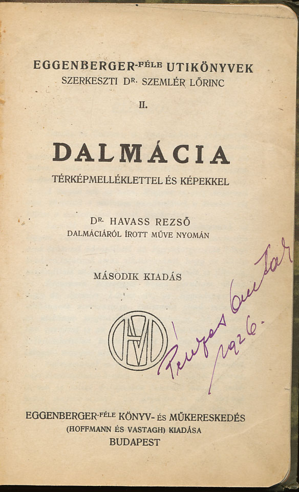 Rezso Havass: Dalmacia. Budimpešta 1926. Opis: Rezso Havass: Dalmacia. Budimpešta 1926. Detaljan vodič po Dalmaciji sa 4 ilustracije i preklopnim zemljovidom. Orig. uvez s naslovnicom u boji, naknadno uvezen u zaštitni tvrdi kartonski uvez. Oktavo format, 83 str. Rezso Havass: Dalmacia. Budimpešta 1926. Aukcija: Aukcija br. 65 - Knjige, zemljovidi, plakati Kataloški broj: 1125 Kategorija: Dalmacija Trenutna ponuđena cijena je 30EUR, ukoliko želite dati svoju ponudu ona mora biti barem 30EUR ili veća. Upišite vrijednost vaše ponude: Ostali predmeti iz kategorije: Dalmacija 1090 180 EUR 1091 210 EUR 1092 350 EUR 1093 100 EUR 1094 2500 EUR 1095 120 EUR 1096 2200 EUR 1097 750 EUR 1098 450 EUR 1099 30 EUR 1100 300 EUR 1101 150 EUR 1102 700 EUR 1103 50 EUR 1104 450 EUR 1105 190 EUR 1106 50 EUR 1107 420 EUR 1108 550 EUR 1109 100 EUR 123→