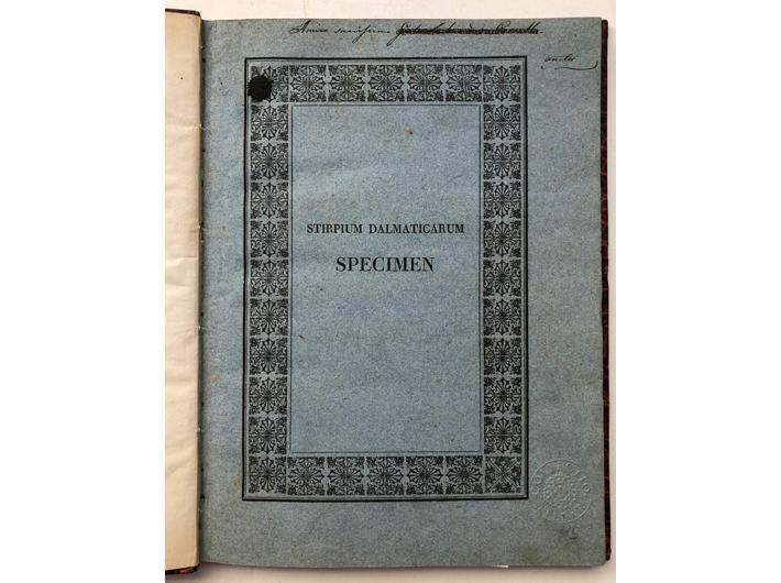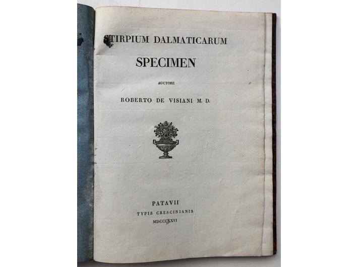 Roberto de Visiani: Stirpium Dalmaticarum specimen. Patavii: Typis Crescinianis, 1826. Prvo izdanje.