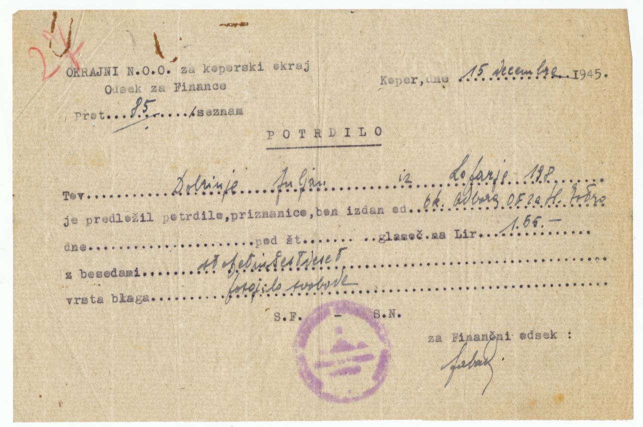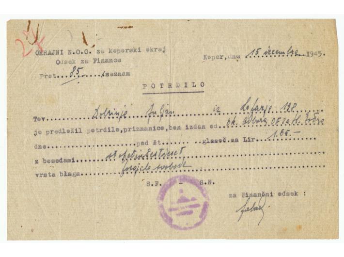 SLOVENIJA, KOPER, potrdilo, Okrajni N.O.O., 1945. na 155 lira, nema u Jelinčiću, izuzetno rijetko Opis: SLOVENIJA, KOPER, potrdilo, Okrajni N.O.O., 1945. na 155 lira, nema u Jelinčiću, izuzetno rijetko SLOVENIJA, KOPER, potrdilo, Okrajni N.O.O., 1945. na 155 lira, nema u Jelinčiću, izuzetno rijetko Aukcija: Aukcija br. 64 - Numizmatika, militarija Kataloški broj: 305 Kategorija: Papirni novac - Slovenija Trenutna ponuđena cijena je 130EUR, ukoliko želite dati svoju ponudu ona mora biti barem 130EUR ili veća. Upišite vrijednost vaše ponude: Ostali predmeti iz kategorije: Papirni novac - Slovenija 227 100 EUR 228 70 EUR 229 70 EUR 230 150 EUR 231 80 EUR 232 30 EUR 233 17 EUR 234 17 EUR 235 25 EUR 236 20 EUR 237 50 EUR 238 50 EUR 239 20 EUR 240 20 EUR 241 50 EUR 242 25 EUR 243 30 EUR 244 40 EUR 245 17 EUR 246 25 EUR 1234→