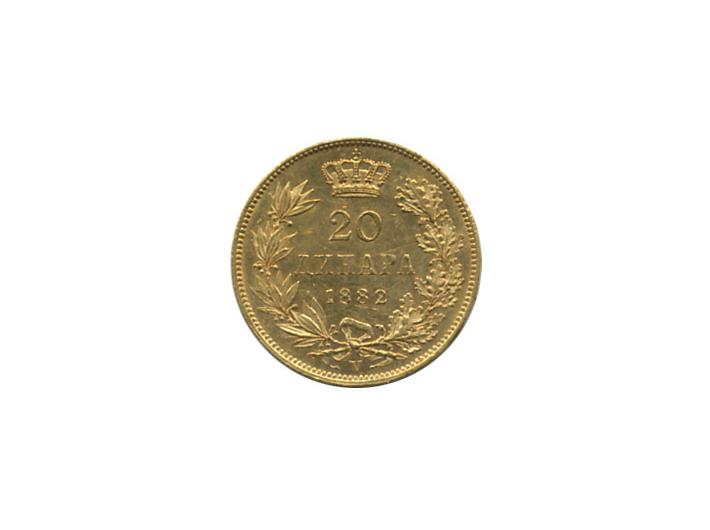 SRBIJA, 20 dinara 1882, Au - 6,45 g, VF-XF Opis: SRBIJA, 20 dinara 1882, Au - 6,45 g, VF-XF SRBIJA, 20 dinara 1882, Au - 6,45 g, VF-XF Aukcija: Aukcija br. 64 - Numizmatika, militarija Kataloški broj: 138 Kategorija: Kovani novac - Srbija Trenutna ponuđena cijena je 360EUR, ukoliko želite dati svoju ponudu ona mora biti barem 380EUR ili veća. Upišite vrijednost vaše ponude: Ostali predmeti iz kategorije: Kovani novac - Srbija 135 800 EUR 136 40 EUR 137 275 EUR 138 400 EUR 139 20 EUR 140 50 EUR 141 500 EUR 142 50 EUR 143 100 EUR