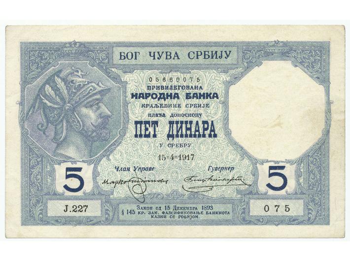 SRBIJA, 5 dinara 15.9.1917, -XF Opis: SRBIJA, 5 dinara 15.9.1917, -XF SRBIJA, 5 dinara 15.9.1917, -XF Aukcija: Aukcija br. 67 - Numizmatika, militarija Kataloški broj: 190 Kategorija: Papirni novac - Srbija Trenutna ponuđena cijena je 100EUR, ukoliko želite dati svoju ponudu ona mora biti barem 110EUR ili veća. Upišite vrijednost vaše ponude: Ostali predmeti iz kategorije: Papirni novac - Srbija 189 1500 EUR 190 100 EUR 191 110 EUR 192 30 EUR 193 50 EUR 194 50 EUR 195 50 EUR