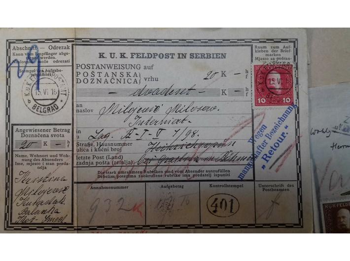 Srbija za vrijeme Austrijske okupacije, lot 25 pisama, dopisnica i razglednica Opis: Srbija za vrijeme Austrijske okupacije, lot 25 pisama, dopisnica i razglednica sa zanimljivim žigovima pošta i cenzurama. Srbija za vrijeme Austrijske okupacije, lot 25 pisama, dopisnica i razglednica Aukcija: Aukcija br. 63 - Filatelija i razglednice Kataloški broj: 1457 Kategorija: Ostalo Kvaliteta: ✉ Trenutna ponuđena cijena je 100EUR, ukoliko želite dati svoju ponudu ona mora biti barem 100EUR ili veća. Upišite vrijednost vaše ponude: Ostali predmeti iz kategorije: Ostalo ☉ 1446 20 EUR ✉ 1447 55 EUR ✉ 1448 18 EUR 1449 120 EUR */⦿ 1450 50 EUR ✉ 1451 14 EUR ✉ 1452 20 EUR **/* 1453 30 EUR 1454 40 EUR ✉ 1455 40 EUR ✉ 1456 45 EUR ✉ 1457 100 EUR ✉ 1458 30 EUR ✉ 1459 65 EUR ✉ 1460 45 EUR ✉ 1461 35 EUR ✉ 1462 60 EUR ✉ 1463 40 EUR 1464 35 EUR 1465 20 EUR 1234→