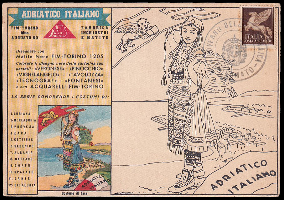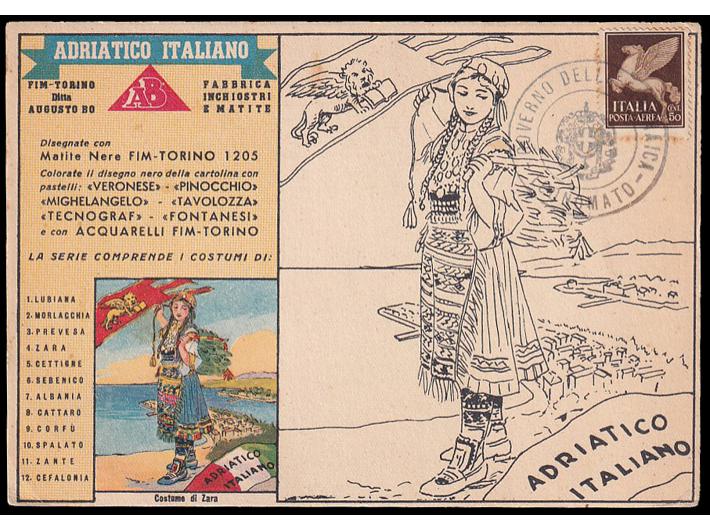 Talijanska promiđbena ilustrirana dopisnica s prikazom djevojke u narodnoj nošnji i vedutom Zadra. Opis: Talijanska promiđbena ilustrirana dopisnica s prikazom djevojke u narodnoj nošnji i vedutom Zadra. Na poleđini kratak tekst o Zadru. Dobra kvaliteta. Talijanska promiđbena ilustrirana dopisnica s prikazom djevojke u narodnoj nošnji i vedutom Zadra. Aukcija: Aukcija br. 63 - Filatelija i razglednice Kataloški broj: 1447 Kategorija: Ostalo Kvaliteta: ✉ Trenutna ponuđena cijena je 50EUR, ukoliko želite dati svoju ponudu ona mora biti barem 55EUR ili veća. Upišite vrijednost vaše ponude: Ostali predmeti iz kategorije: Ostalo ☉ 1446 20 EUR ✉ 1447 55 EUR ✉ 1448 18 EUR 1449 120 EUR */⦿ 1450 50 EUR ✉ 1451 14 EUR ✉ 1452 20 EUR **/* 1453 30 EUR 1454 40 EUR ✉ 1455 40 EUR ✉ 1456 45 EUR ✉ 1457 100 EUR ✉ 1458 30 EUR ✉ 1459 65 EUR ✉ 1460 45 EUR ✉ 1461 35 EUR ✉ 1462 60 EUR ✉ 1463 40 EUR 1464 35 EUR 1465 20 EUR 1234→