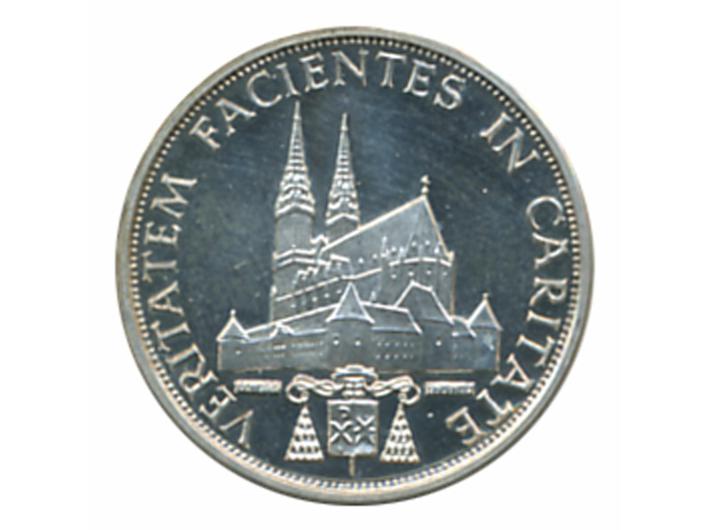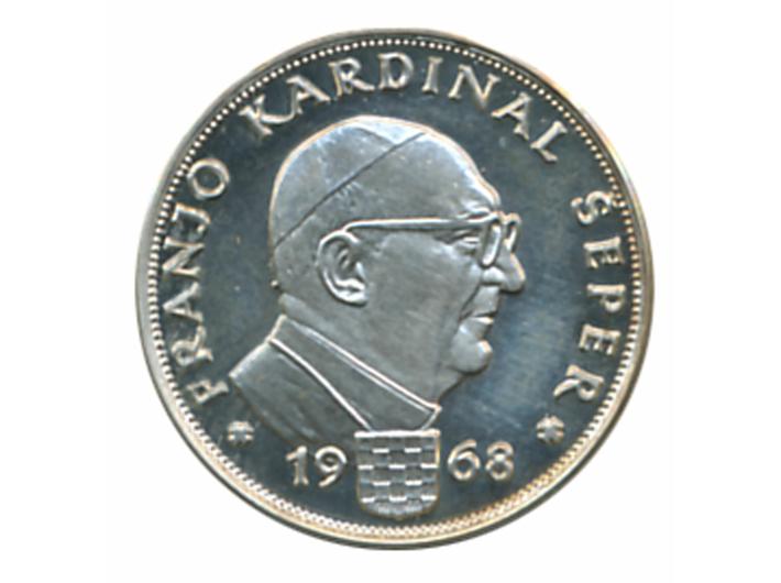 • Tuđinin srebrnjak, Franjo Šeper/katedrala, Ag - 3,96 g, 20 mm, emigrantsko izdanje Zlatka Tudjine 1960/70., UNC, rijetko
