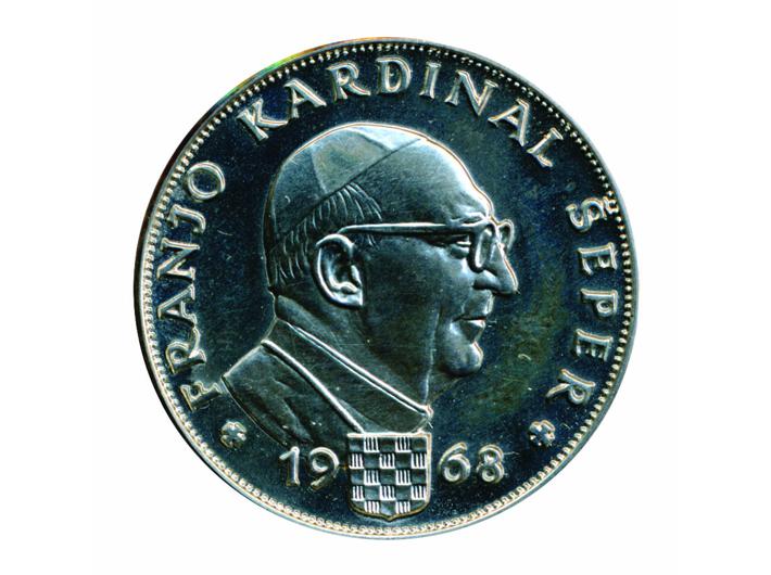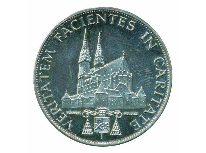 • Tuđinin srebrnjak, Franjo Šeper/katedrala, Ag - 7,96 g, 26 mm, emigrantsko izdanje Zlatka Tudjine 1960/70., UNC