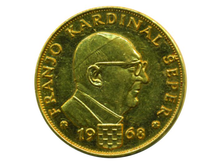 • Tuđinin zlatnik, Franjo Šeper/katedrala, 3 dukata, Au - 10,36 g, 26 mm, emigrantsko izdanje Zlatka Tudjine 1960/70., UNC