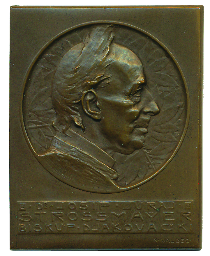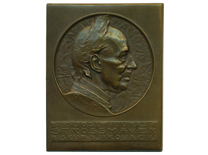 • VALDEC, Rudolf, jednostrana plaketa "Štrosmajer", 1905, AE, 56x70 mm, izvrsna kvaliteta.