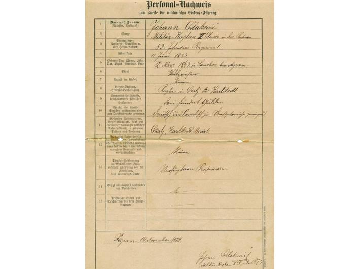 VOJNA PROPUSNICA, za Ivana Oslakovića (kaplara II klase 53. pješačke regimente 9. satnije). Samobor/Zagreb, 1883. Opis: VOJNA PROPUSNICA, za Ivana Oslakovića (kaplara II klase 53. pješačke regimente 9. satnije austrougarske vojske). Samobor/Zagreb, 1883. 12x17 cm. Stanje vrlo dobro. VOJNA PROPUSNICA, za Ivana Oslakovića (kaplara II klase 53. pješačke regimente 9. satnije). Samobor/Zagreb, 1883. Aukcija: Aukcija br. 67 - Numizmatika, militarija Kataloški broj: 521 Kategorija: Fotografije i promičba Trenutna ponuđena cijena je 45EUR, ukoliko želite dati svoju ponudu ona mora biti barem 50EUR ili veća. Upišite vrijednost vaše ponude: Ostali predmeti iz kategorije: Fotografije i promičba 474 30 EUR 475 40 EUR 476 30 EUR 477 8 EUR 478 16 EUR 479 14 EUR 480 55 EUR 481 16 EUR 482 15 EUR 483 30 EUR 484 4 EUR 485 200 EUR 486 80 EUR 487 180 EUR 488 25 EUR 489 45 EUR 490 45 EUR 491 65 EUR 492 170 EUR 493 220 EUR 123→