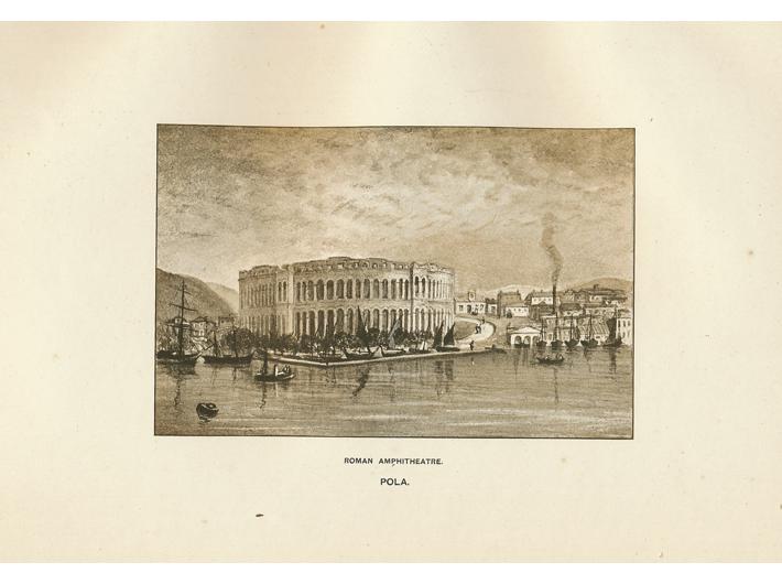 Opis: William Royle: Dalmatia Illustrata, with original paintings. London, Vinton & Co. 1900. Pored opisa cijele obale od Pule do Kotora, knjiga sadrži 30 lijepih litografija u sepija tehnici. Veliki folio format, 33x24 cm, originalan crveni tvrdi uvez s lijepim zlatotiskom na naslovnici.