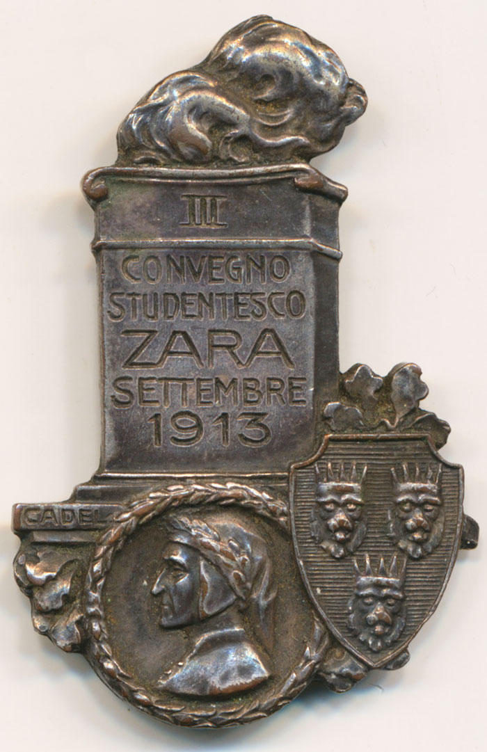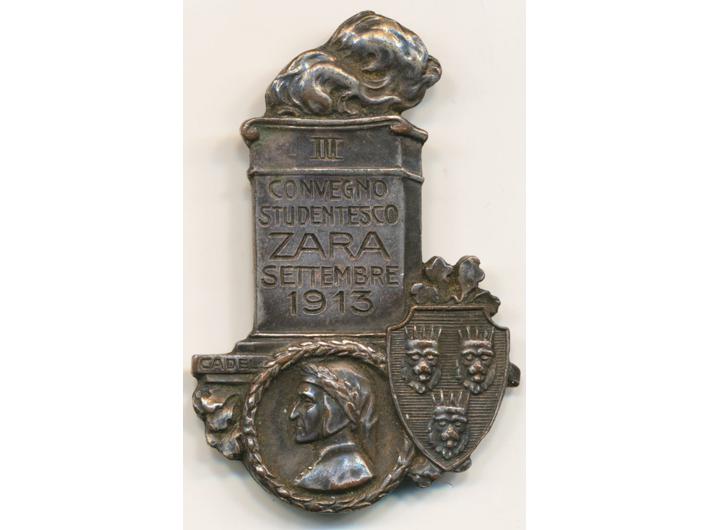 • ZADAR - ZARA, značka, III. kongres studenata 1913. 47x32 mm
